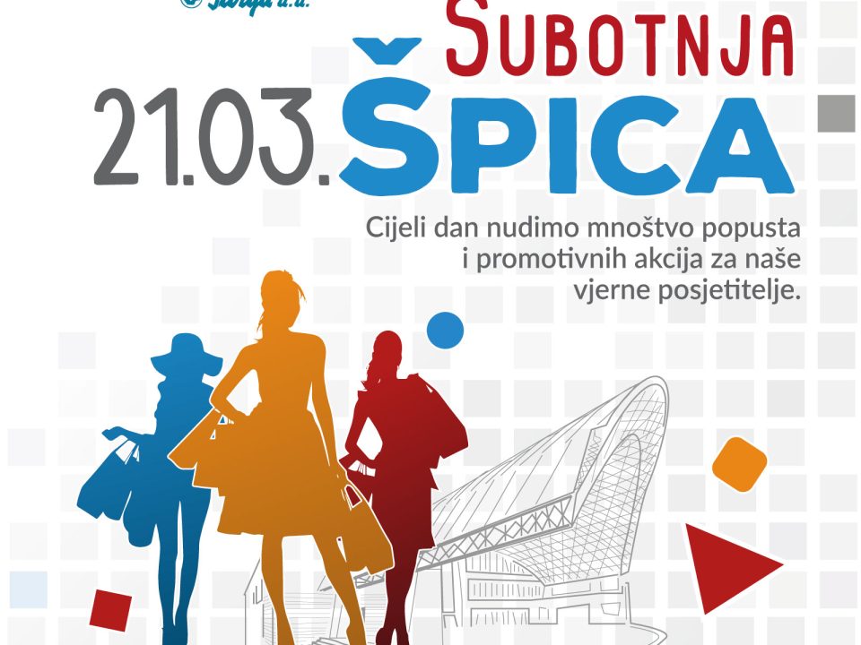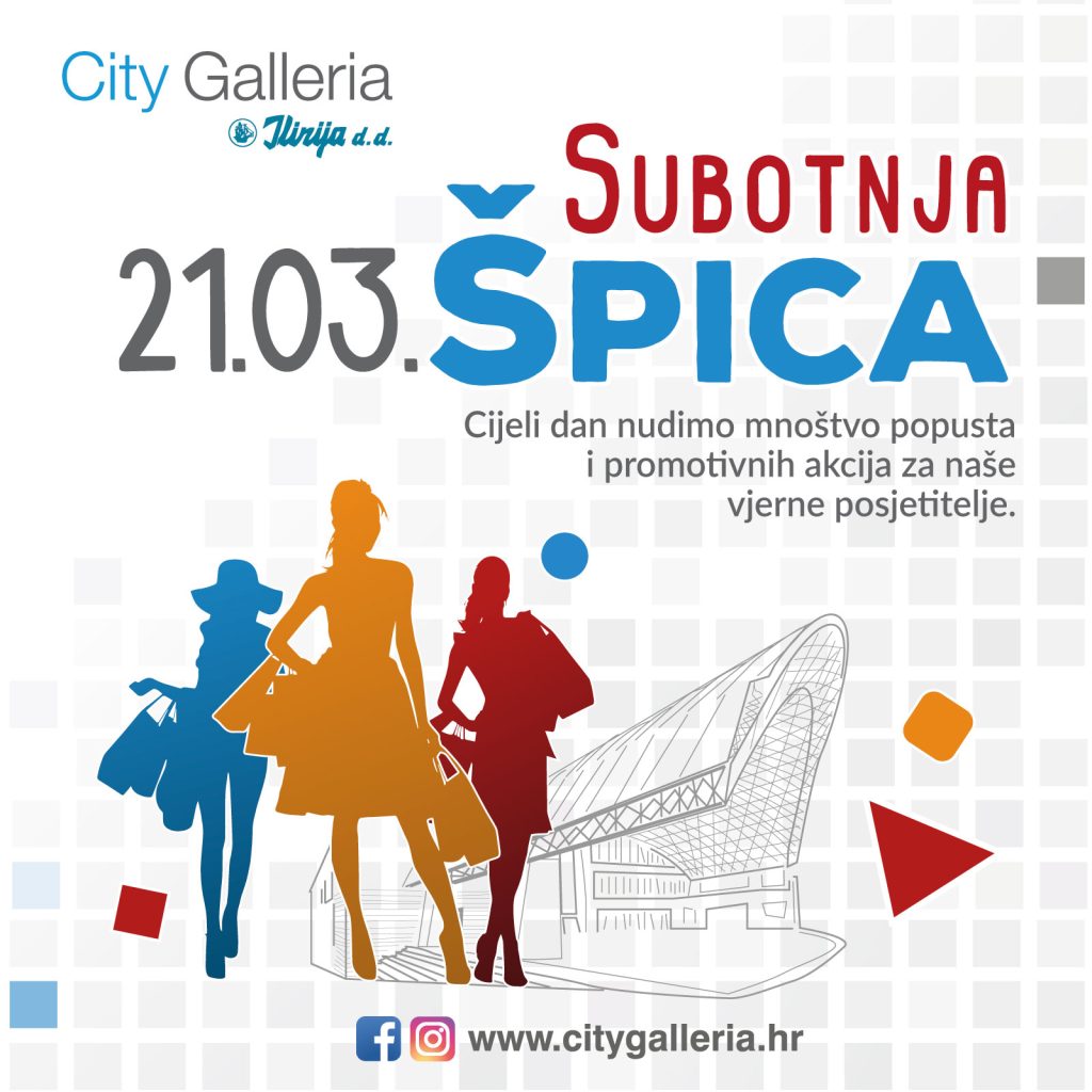 Novi vikend donosi novu „SUBOTNJU ŠPICU“ u centru City Galleria! Ovu subotu, 21. veljače, cijeli dan nudimo mnoštvo popusta i promotivnih akcija, zato iskoristite dan za posjet vašem omiljenom centru u srcu grada.